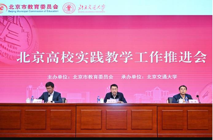 日前,北京市教委在北京交通大学组织召开北京高校实践教学工作推进会,旨在深入贯彻落实《北京高等教育本科人才培养质量提升行动计划(2022-2024年)》,扎实推进实践教学工作高质量发展,不断提升人才培养质量。市委教育工委委员、市教委副主任柳长安、北京交通大学副校长荆涛等出席会议。北京市65所本科院校教学副校长、教务部门主要负责人、各二级学院教学院长以及实践教学工作相关教师和管理人员代表等2800余人,通过线上与线下相结合的方式参加会议。